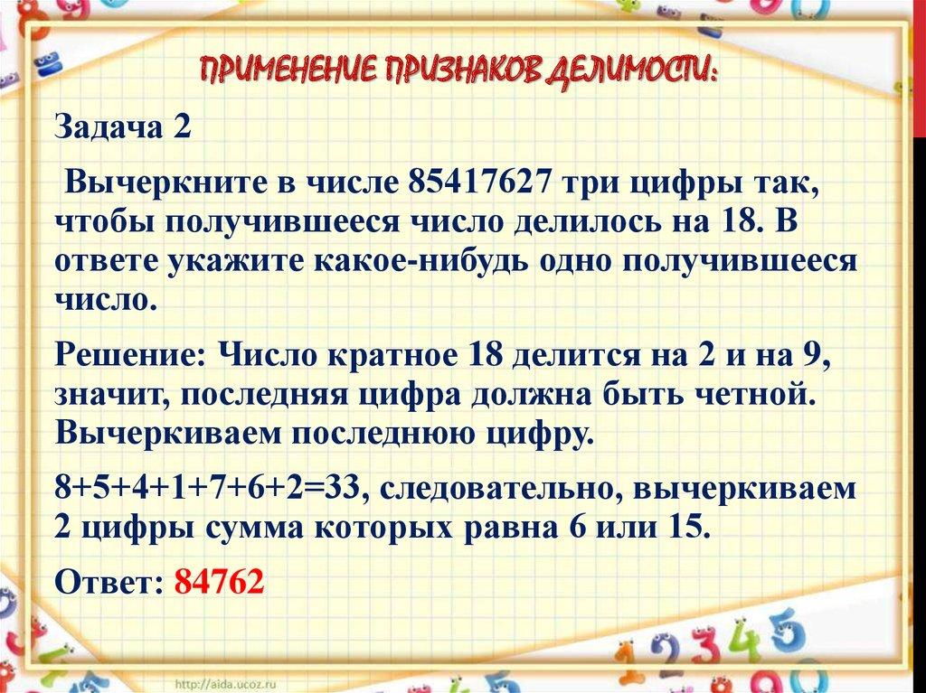 ПРИМЕНЕНИЕ ПРИЗНАКОВ ДЕЛИМОСТИ:Задача 2