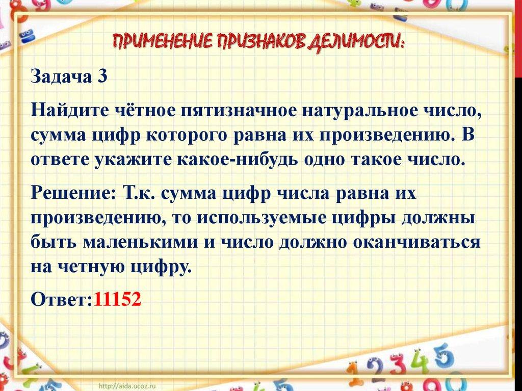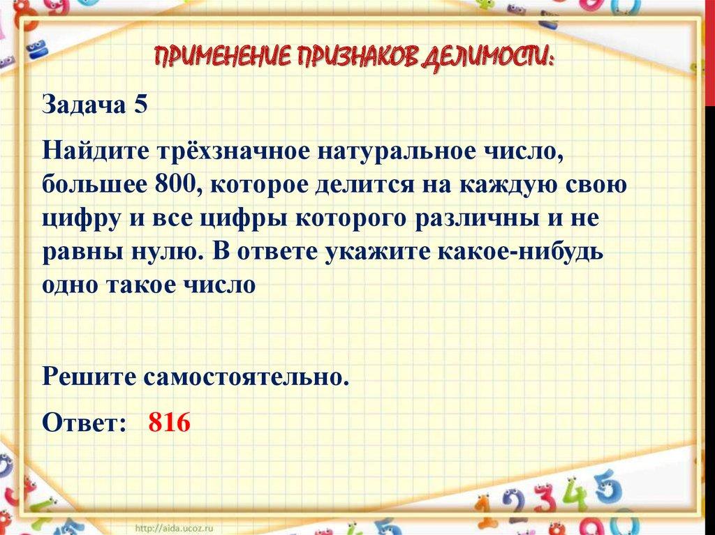 ПРИМЕНЕНИЕ ПРИЗНАКОВ ДЕЛИМОСТИ:Задача 5