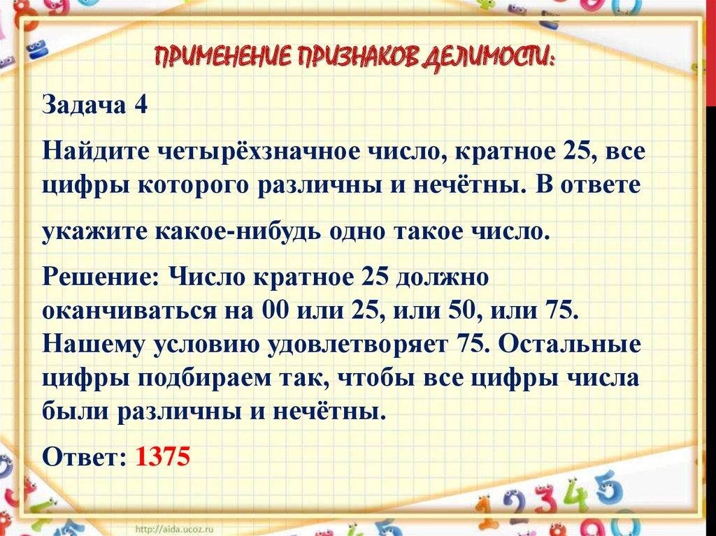 ПРИМЕНЕНИЕ ПРИЗНАКОВ ДЕЛИМОСТИ:Задача 4