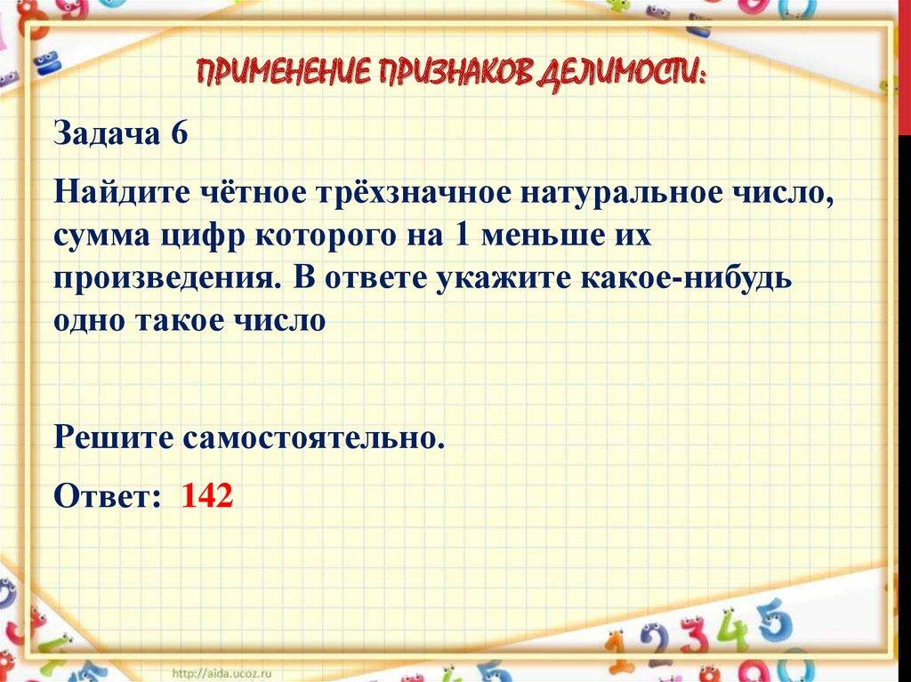 ПРИМЕНЕНИЕ ПРИЗНАКОВ ДЕЛИМОСТИ:Задача 6