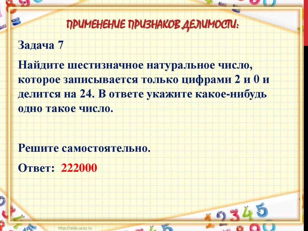 ПРИМЕНЕНИЕ ПРИЗНАКОВ ДЕЛИМОСТИ:Задача 7