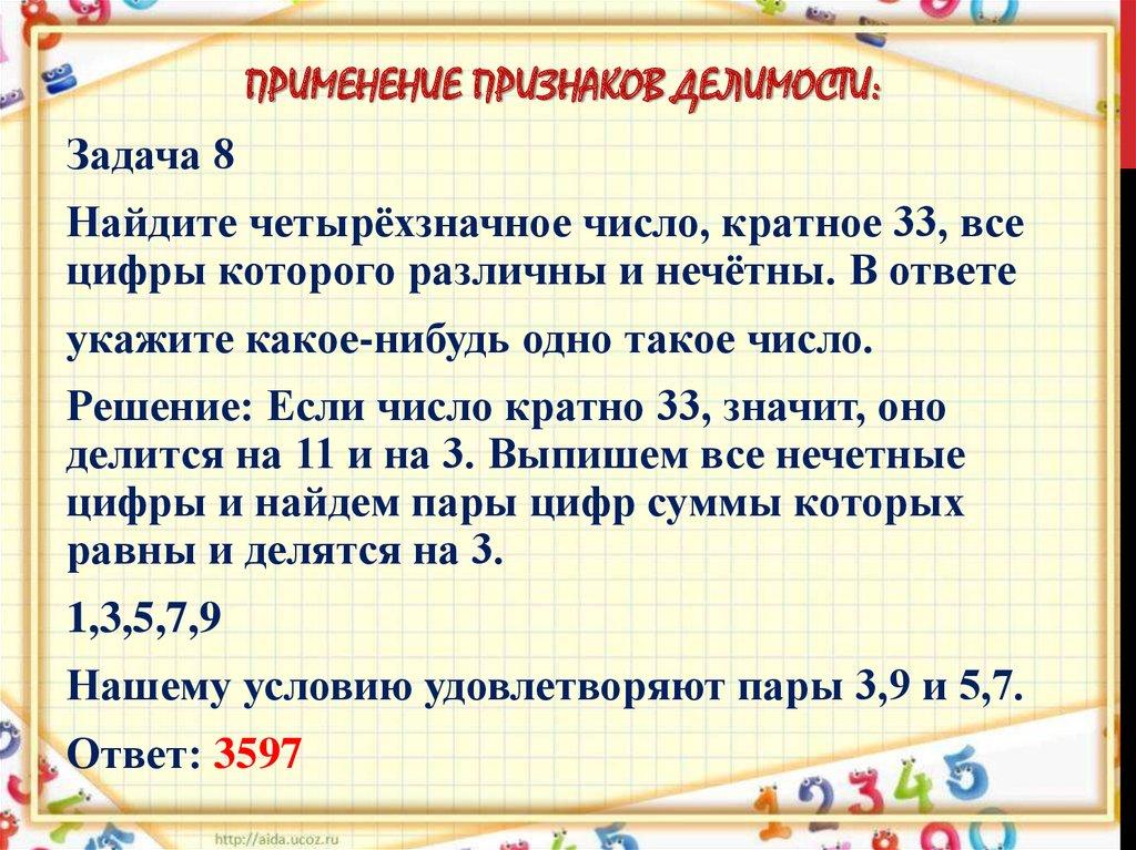 ПРИМЕНЕНИЕ ПРИЗНАКОВ ДЕЛИМОСТИ:Задача 8