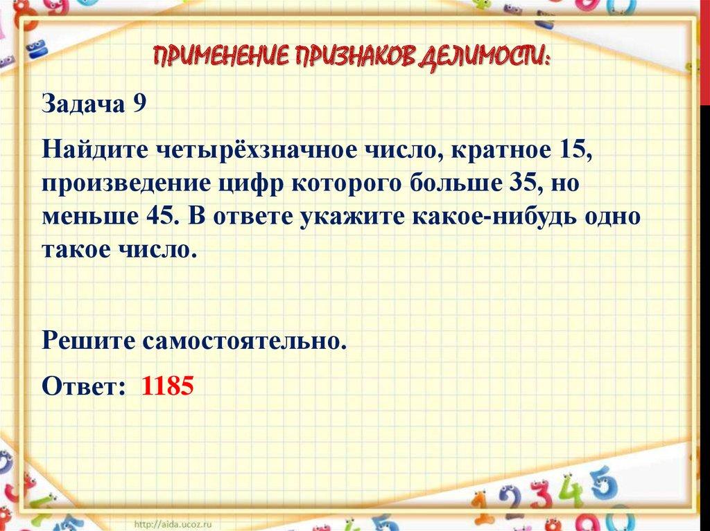 ПРИМЕНЕНИЕ ПРИЗНАКОВ ДЕЛИМОСТИ:Задача 9