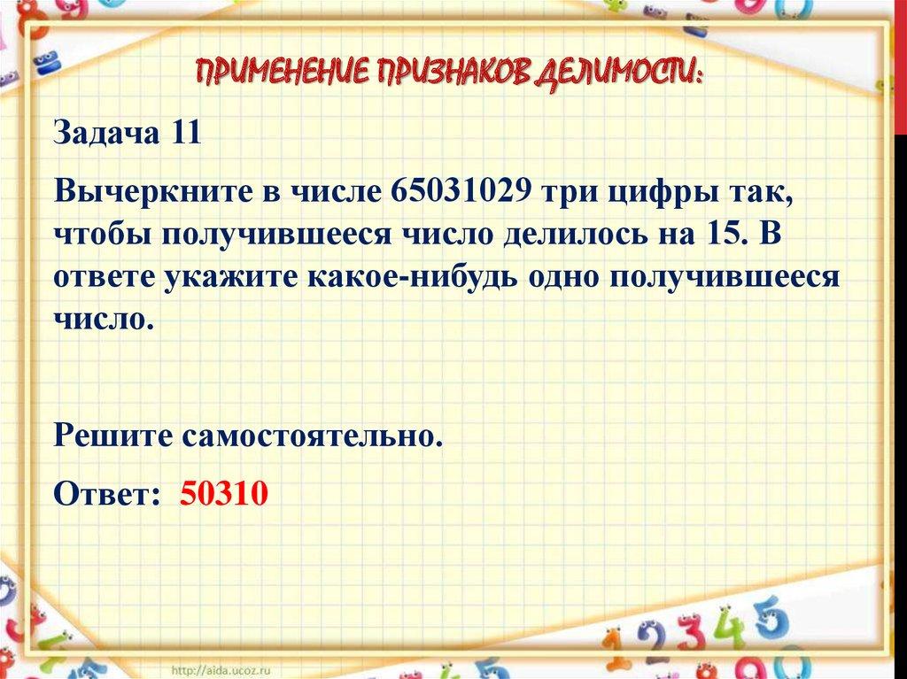 ПРИМЕНЕНИЕ ПРИЗНАКОВ ДЕЛИМОСТИ:Задача 11