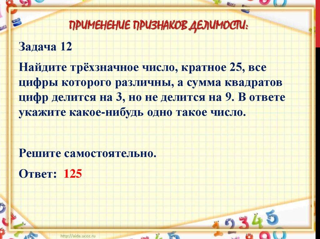 ПРИМЕНЕНИЕ ПРИЗНАКОВ ДЕЛИМОСТИ:Задача 12