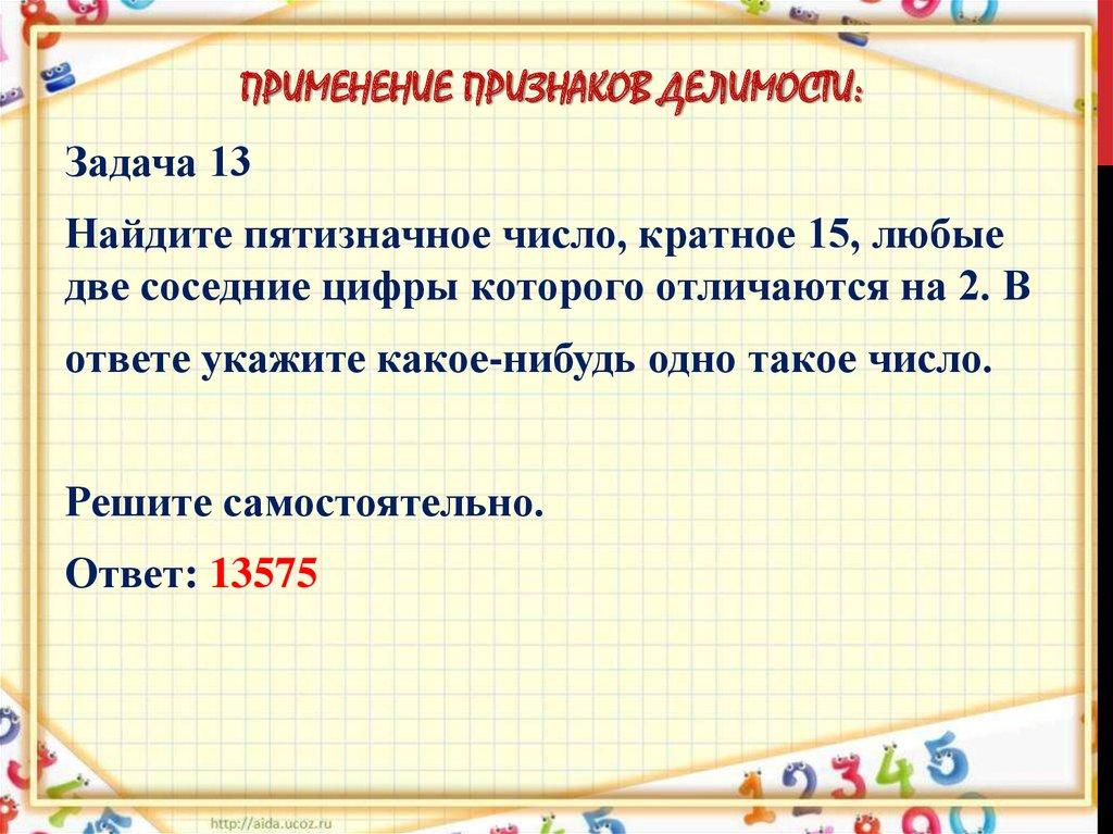 ПРИМЕНЕНИЕ ПРИЗНАКОВ ДЕЛИМОСТИ:Задача 13