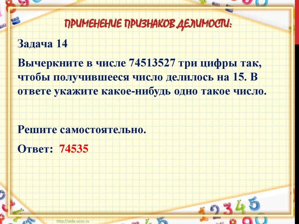 ПРИМЕНЕНИЕ ПРИЗНАКОВ ДЕЛИМОСТИ:Задача 14