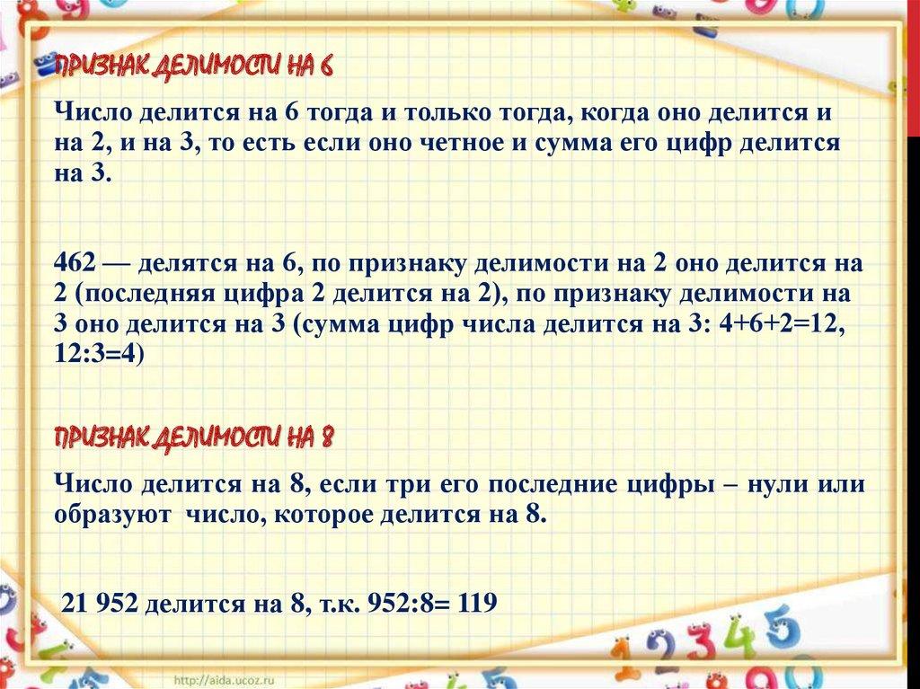 ПРИЗНАК ДЕЛИМОСТИ НА 6Число делится на 6 тогда и только тогда, когда оно делится и