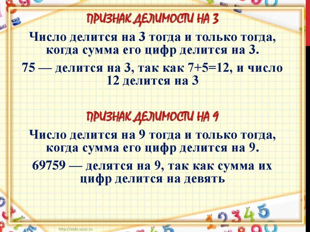 ПРИЗНАК ДЕЛИМОСТИ НА 9