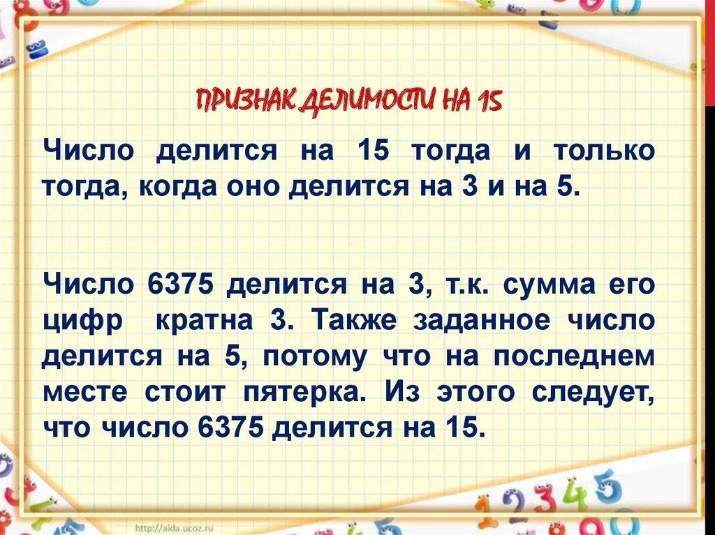 ПРИЗНАК ДЕЛИМОСТИ НА 15Число делится на 15 тогда и только