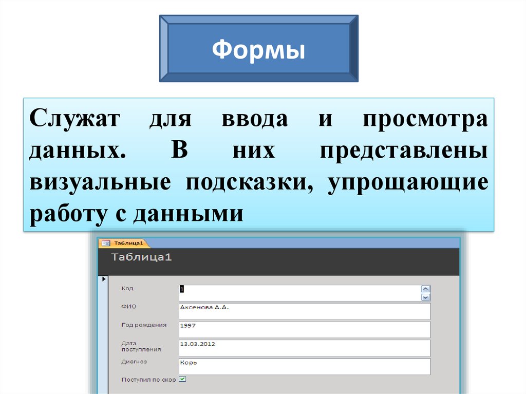 ФормыСлужат для ввода и просмотра