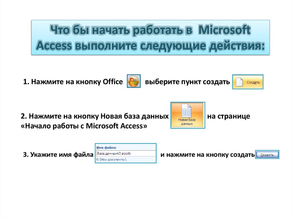 Что бы начать работать в MicrosoftAccess выполните следующие действия: