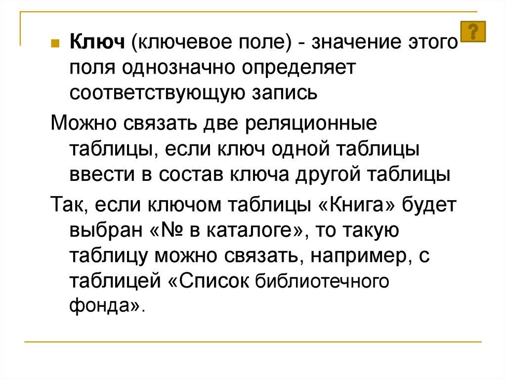 запись, поле, ключ
