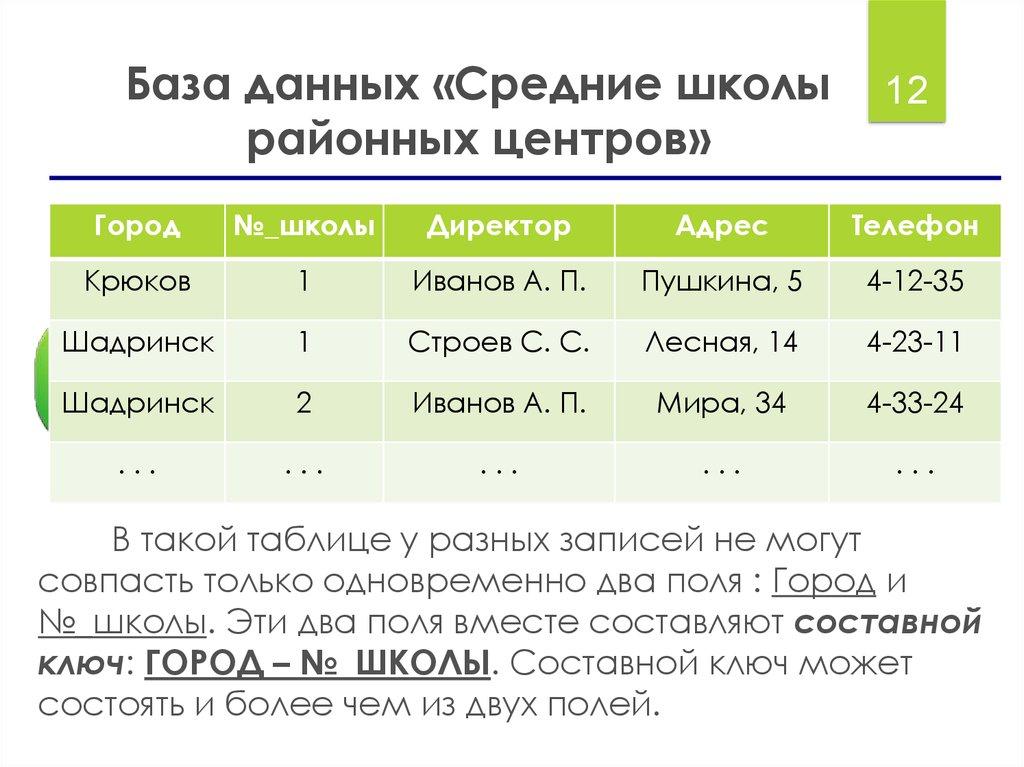 корню). Главный ключом таблицы будет