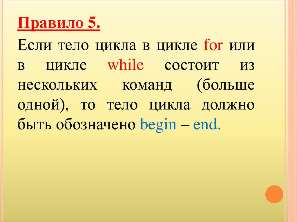 Правило 5.Если тело цикла в цикле for или