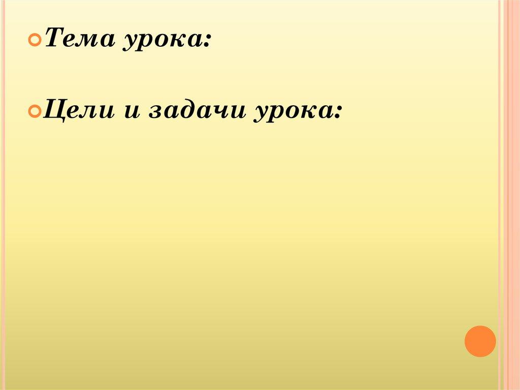 и задачи урока: