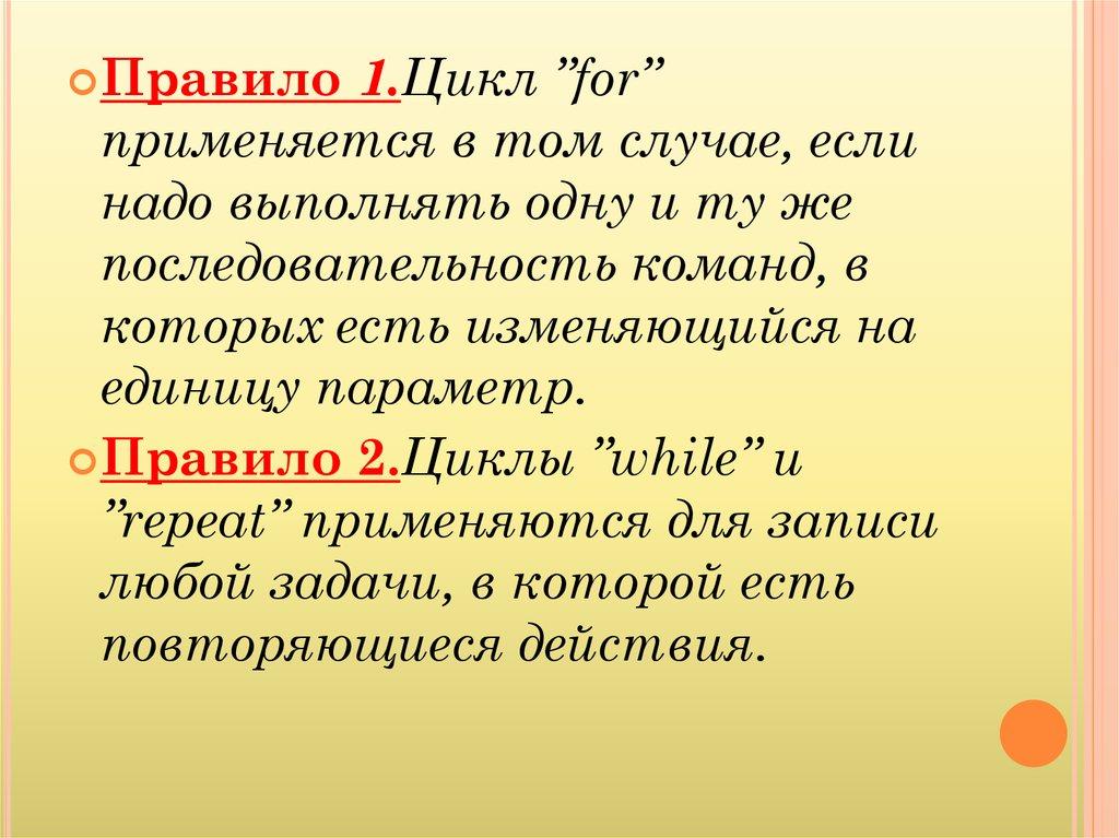 Правило1.Цикл ”for”