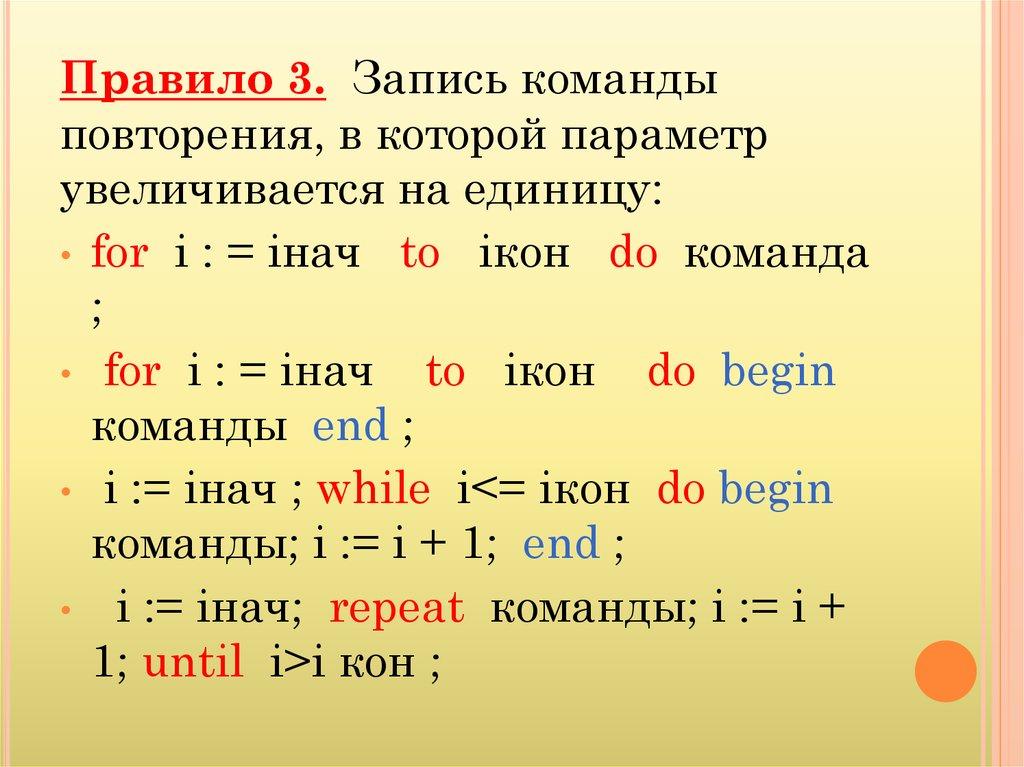 Правило 3. Запись командыповторения, в которой параметр