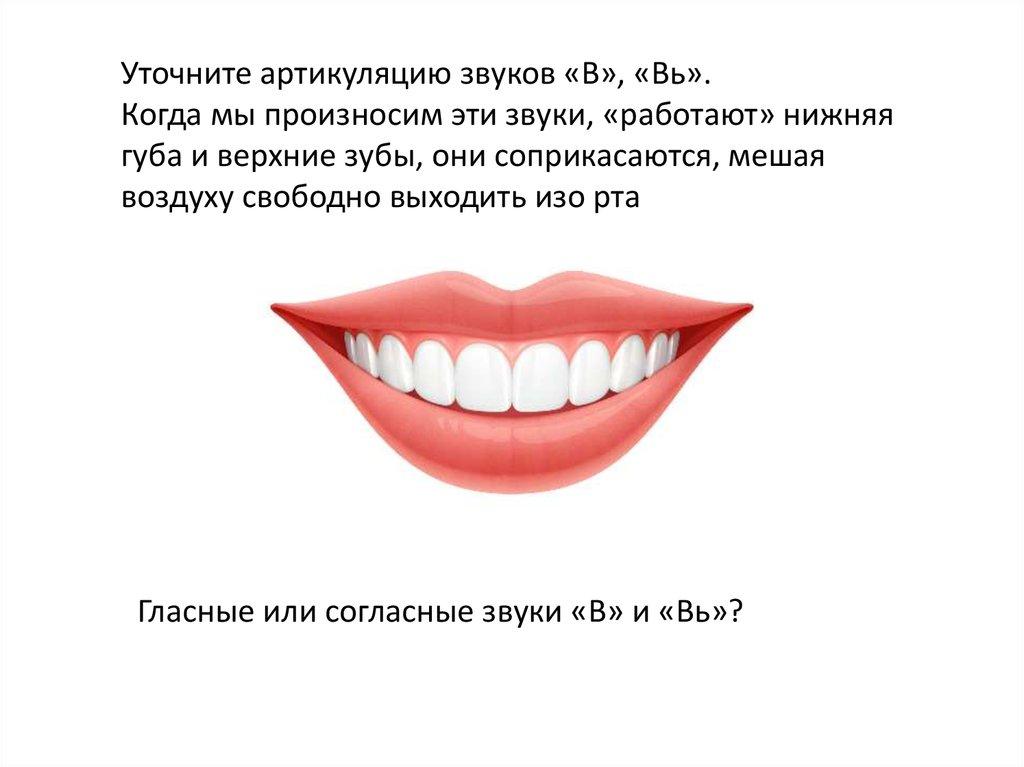 Уточните артикуляцию звуков «В», «Вь».Когда мы произносим эти звуки, «работают» нижняя