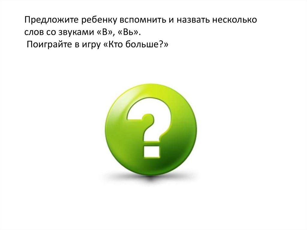 Предложите ребенку вспомнить и назвать несколькослов со звуками «В», «Вь».