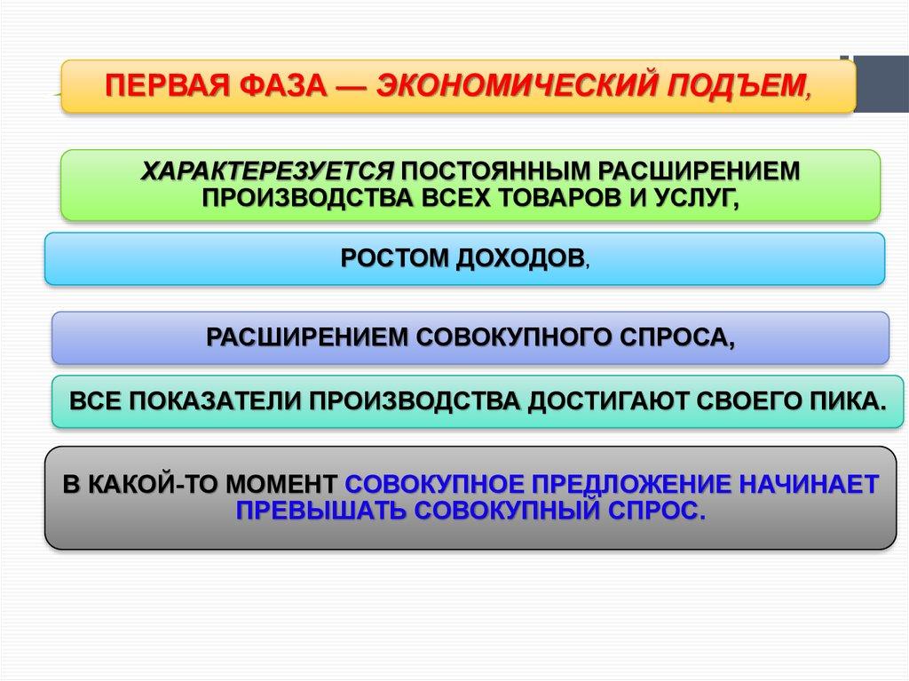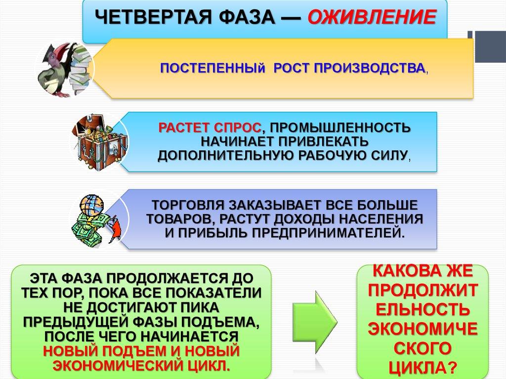 ЧЕТВЕРТАЯ ФАЗА — ОЖИВЛЕНИЕПОСТЕПЕННЫй РОСТ ПРОИЗВОДСТВА,