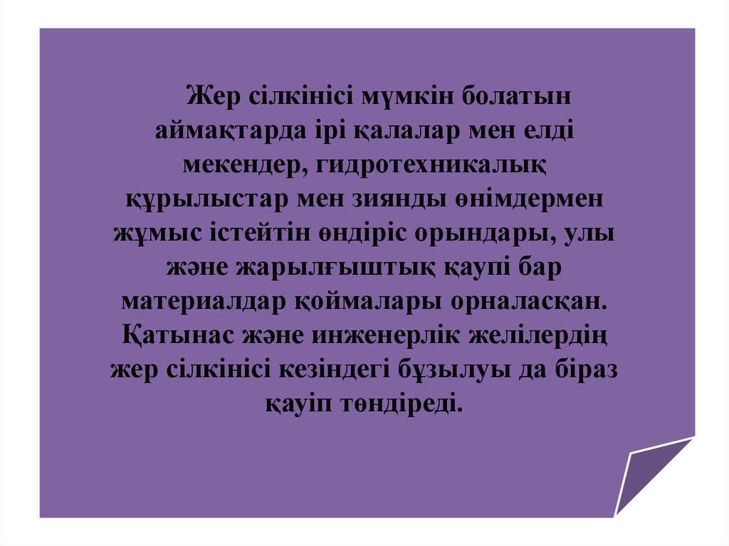 Жер сілкінісі мүмкін болатынаймақтарда ірі қалалар мен елді