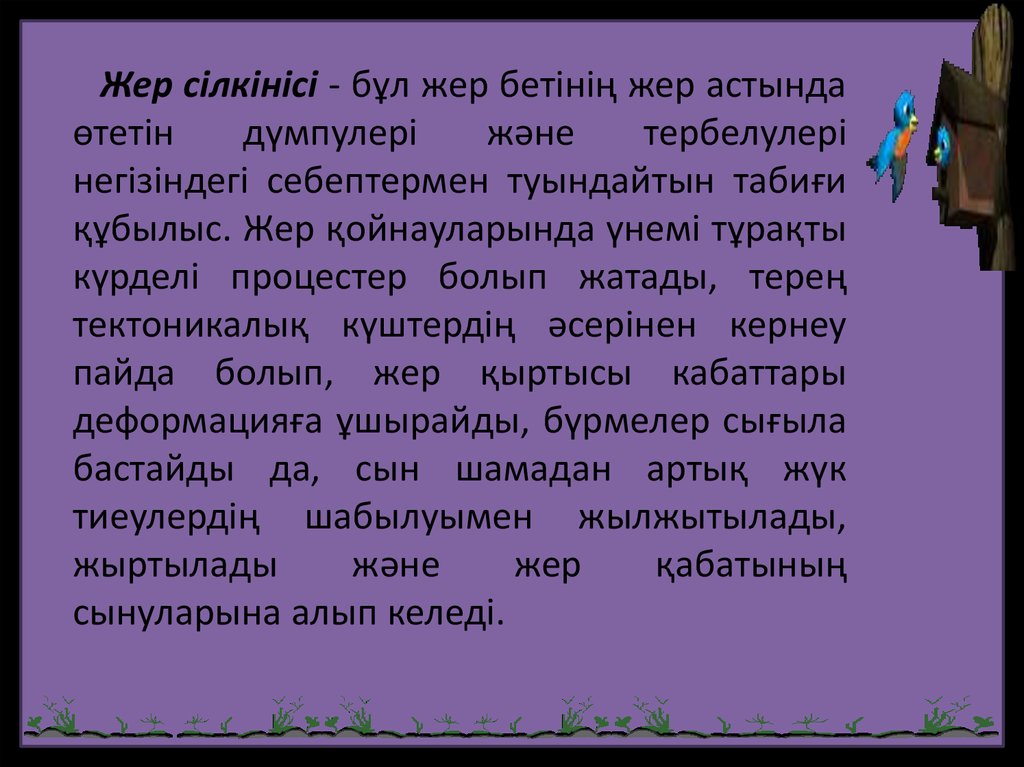 Жер сілкінісі - бұл жер бетінің жер астындаөтетін