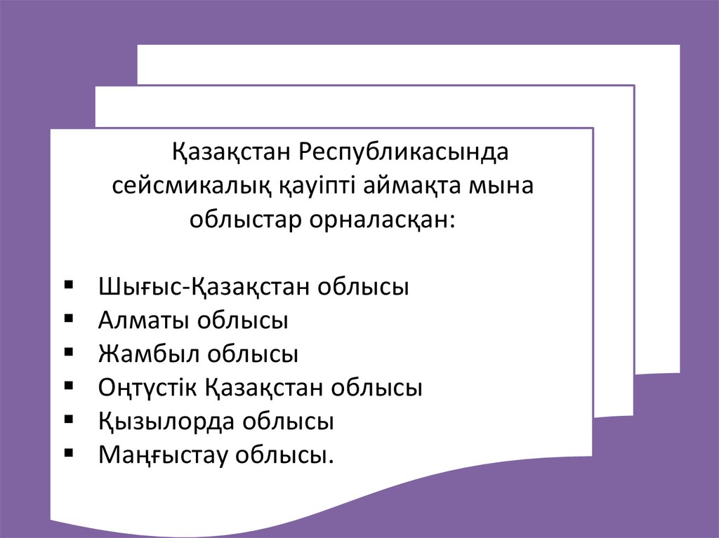 Қазақстан Республикасындасейсмикалық қауіпті аймақта мына