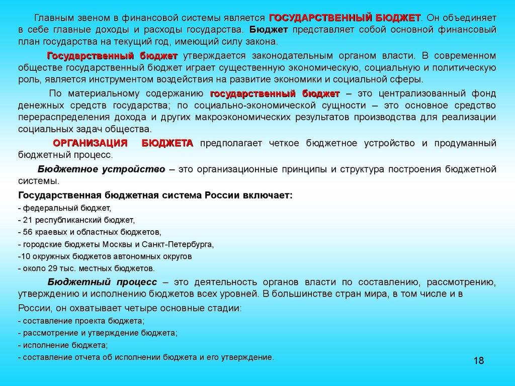 4. Финансовая и налоговая системы. Государственный бюджет.