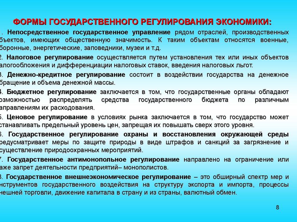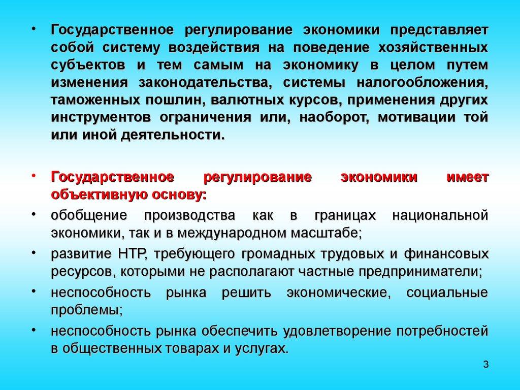 • Объектами государственного регулирования выступают сферы, отрасли,