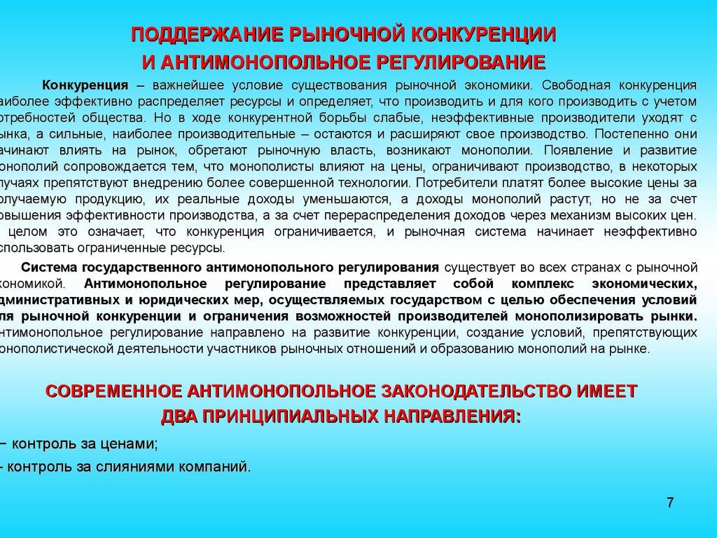 ля рыночной конкуренции и ограничения возможностей производителей монополизировать рынки.