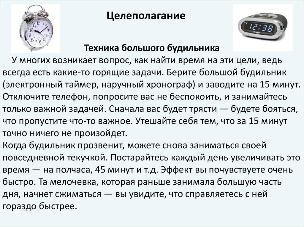 ЦелеполаганиеТехника большого будильника