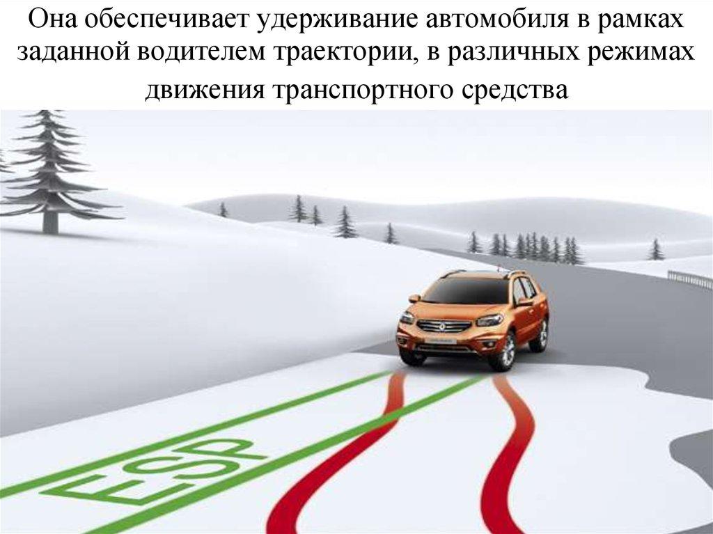 2. Она обеспечивает удерживание автомобиля в рамках заданной водителем траектории, в различных режимах движения транспортного