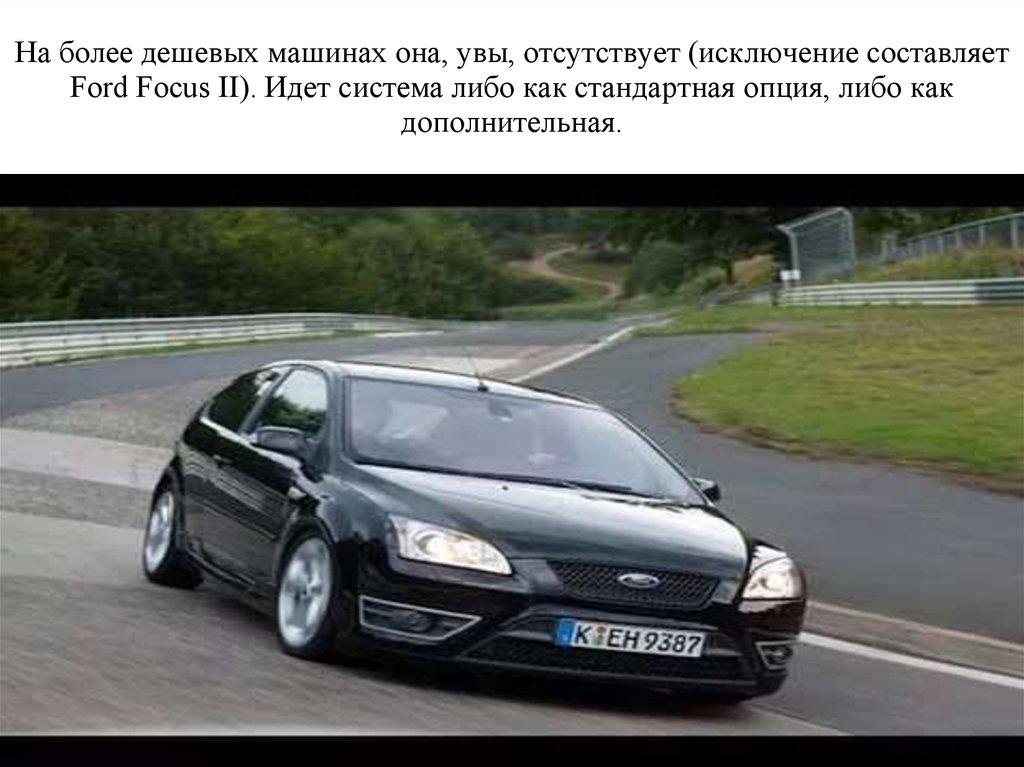 11. На более дешевых машинах она, увы, отсутствует (исключение составляет Ford Focus II). Идет система либо как стандартная опция,