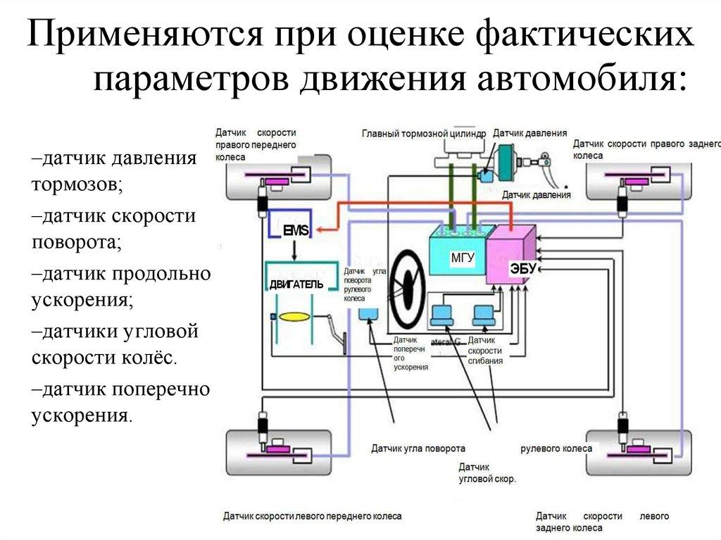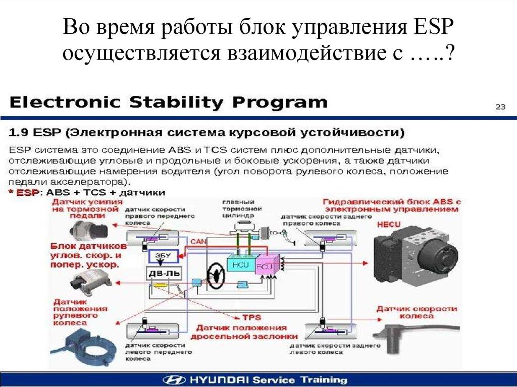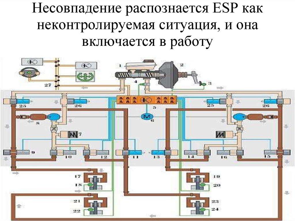 24. Блок управления ESP осуществляет приём сигналов от датчиков, и производит формирование управляющего воздействия касательно