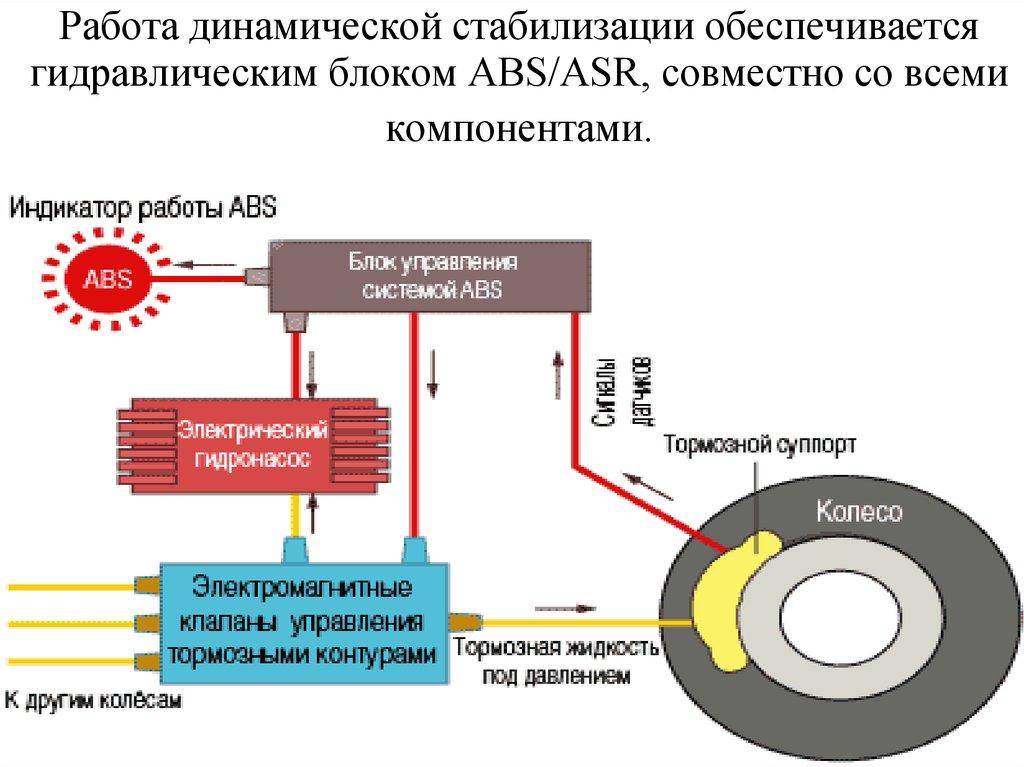 27. Работа динамической стабилизации обеспечивается гидравлическим блоком ABS/ASR, совместно со всеми компонентами.
