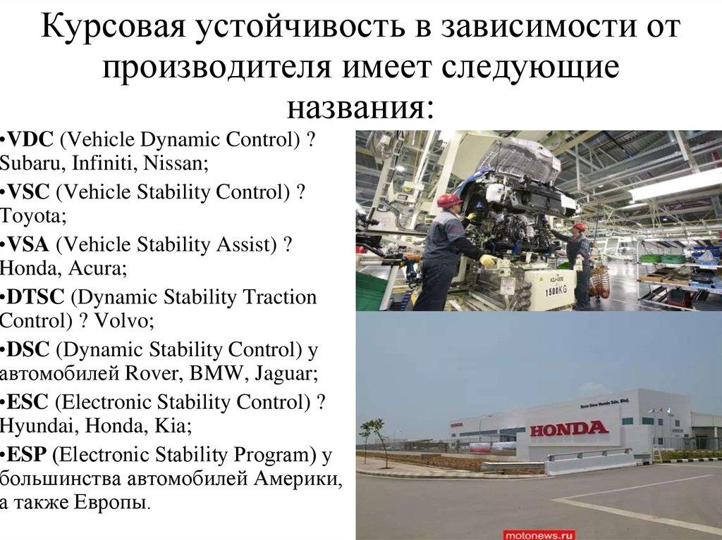 30. Устройство систем ESC, DSC, ESP, VDC, VSC, VSA