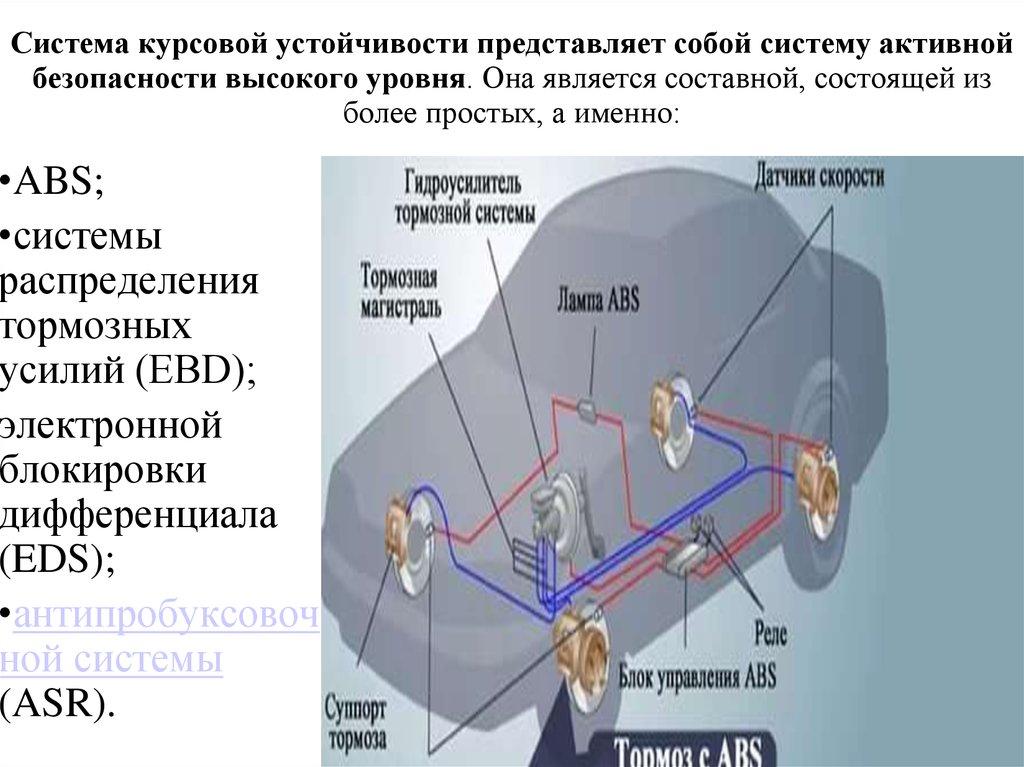 31. Система курсовой устойчивости представляет собой систему активной безопасности высокого уровня. Она является составной,