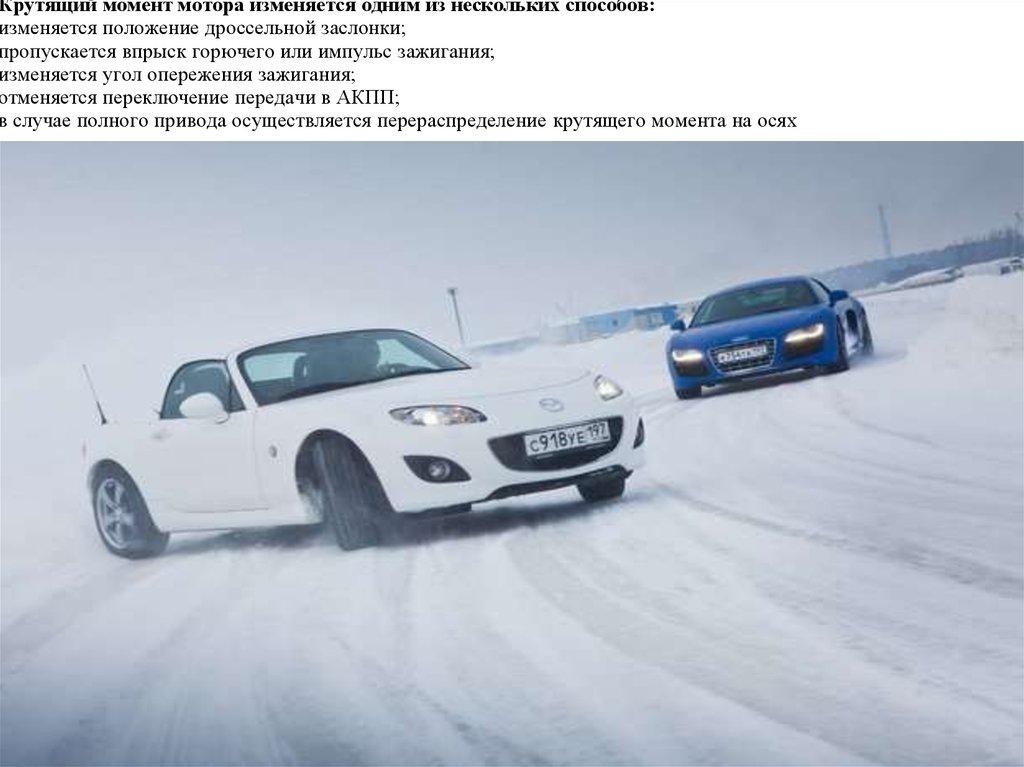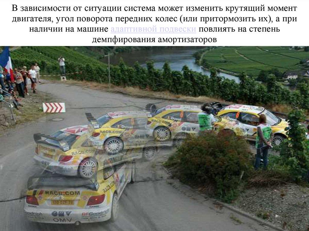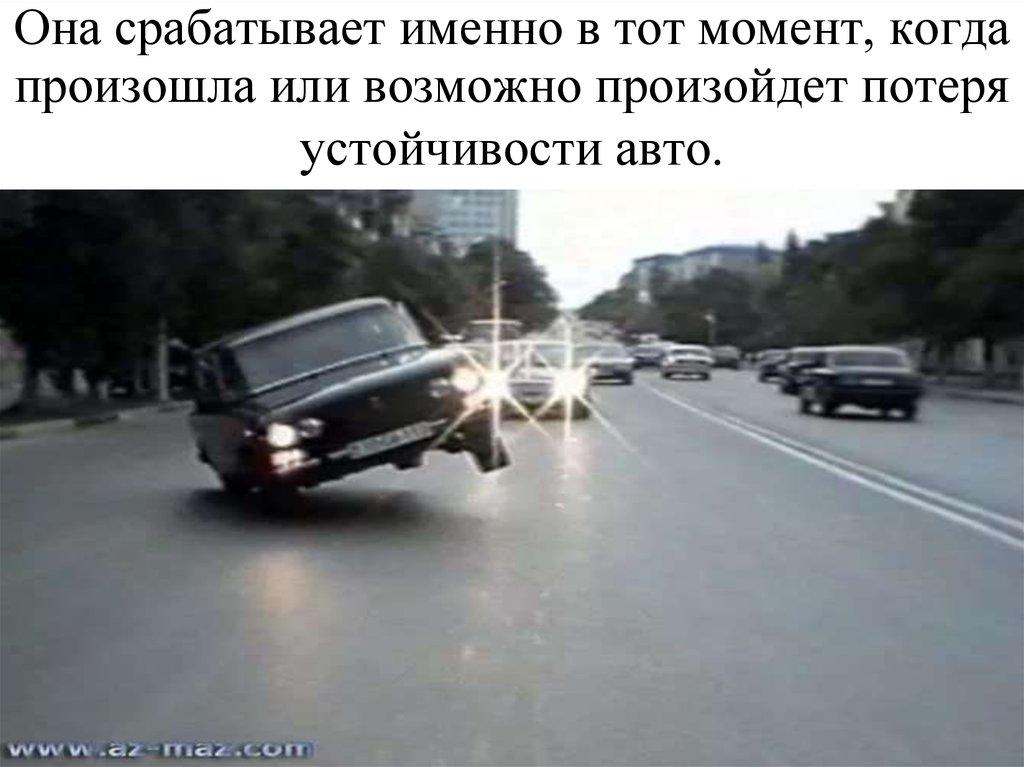 9. Она срабатывает именно в тот момент, когда произошла или возможно произойдет потеря устойчивости авто.