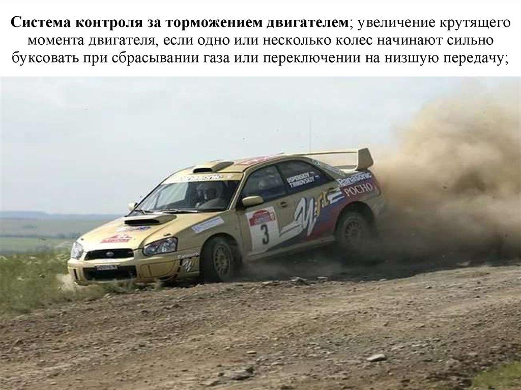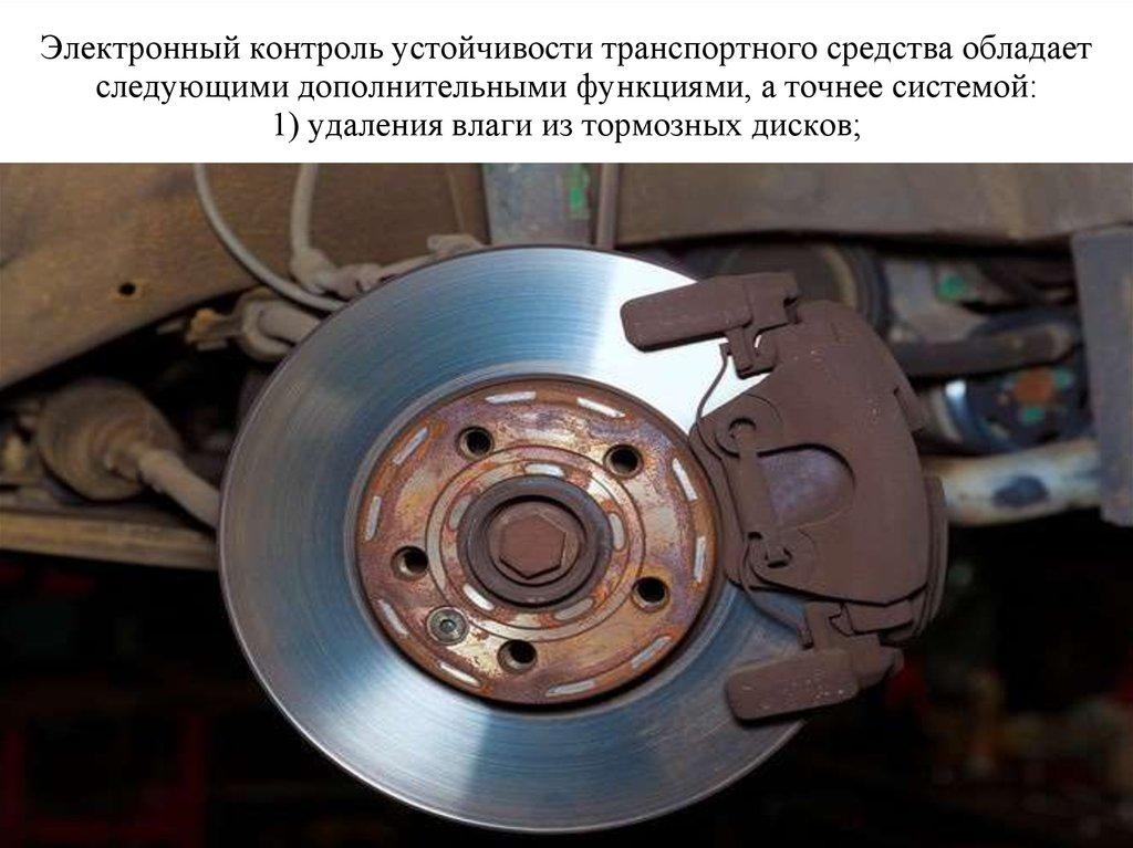 удаления влаги из тормозных дисков;91. Электронный контроль устойчивости транспортного средства обладает следующими дополнительными функциями, а точнее системой: 2)