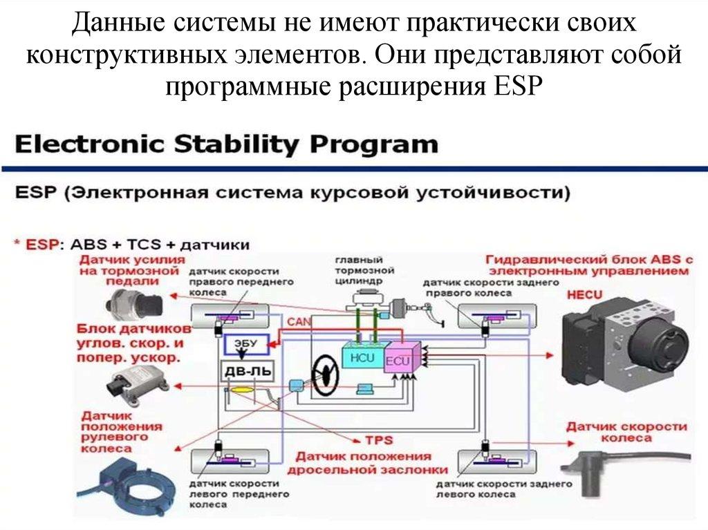 гидравлическим усилителем тормозов и прочие.96. Данные системы не имеют практически своих конструктивных элементов. Они представляют собой программные расширения ESP