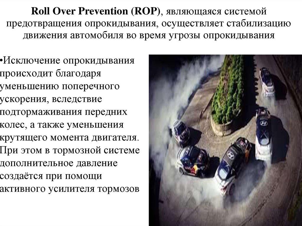 97. Roll Over Prevention (ROP), являющаяся системой предотвращения опрокидывания, осуществляет стабилизацию движения автомобиля во