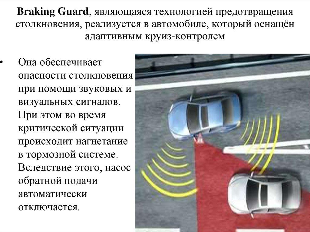 98. Braking Guard, являющаяся технологией предотвращения столкновения, реализуется в автомобиле, который оснащён адаптивным