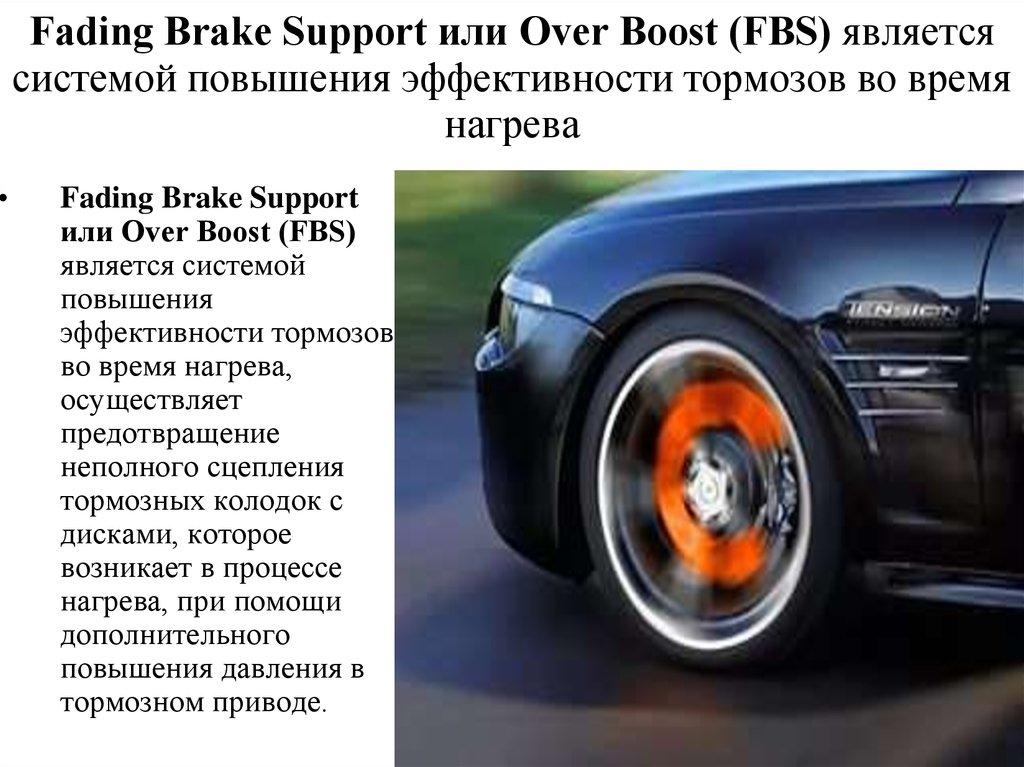 100. Fading Brake Support или Over Boost (FBS) является системой повышения эффективности тормозов во время нагрева