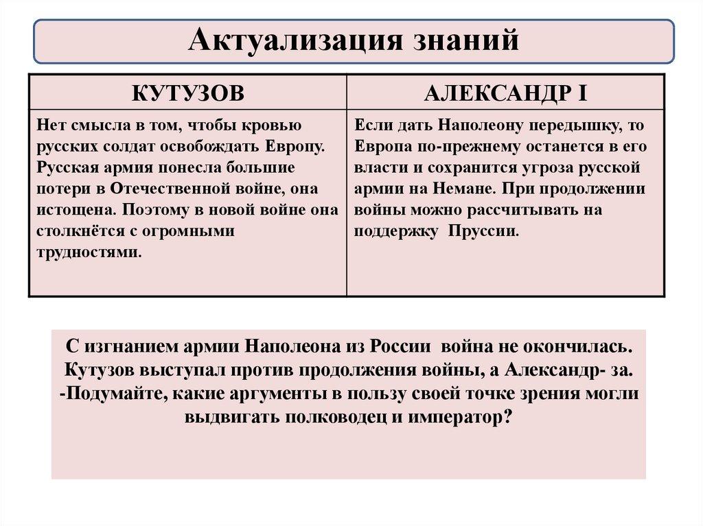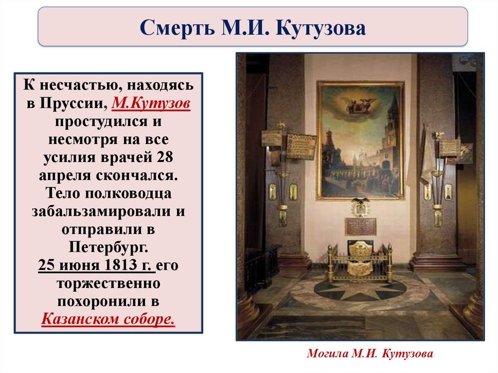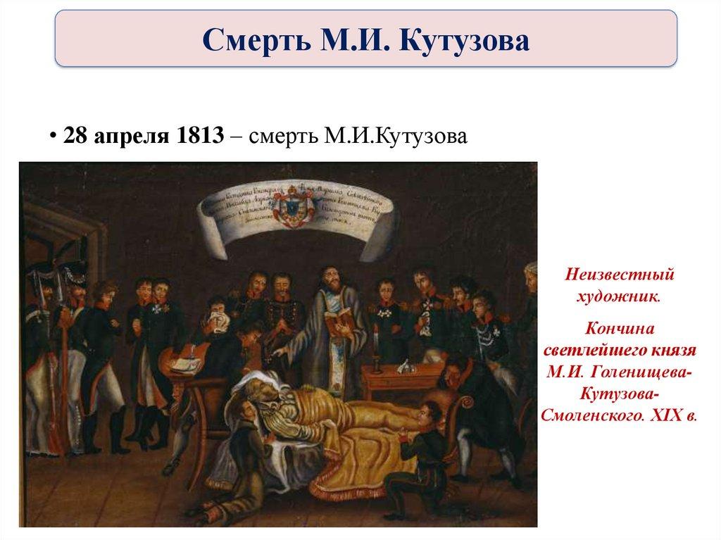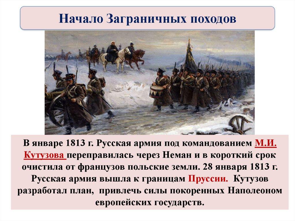 1. Начало Заграничных походов.2. Смерть М. И. Кутузова.