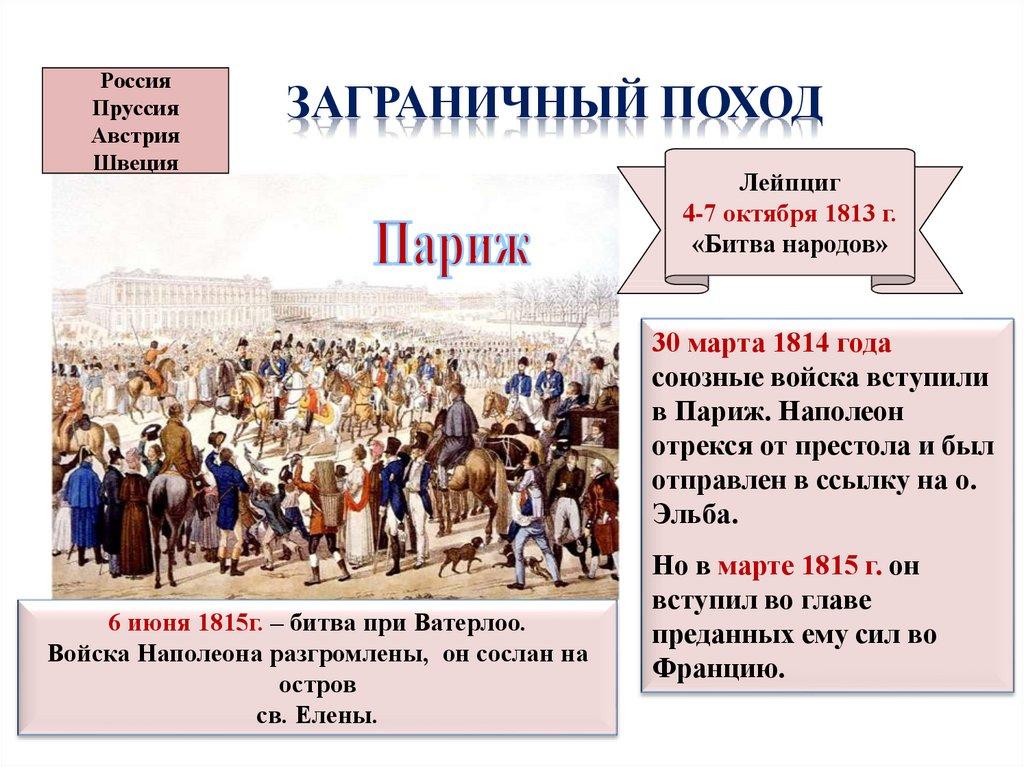 Заграничные походы русской армии. Внешняя политика Александра I в 1813-1825 годы
