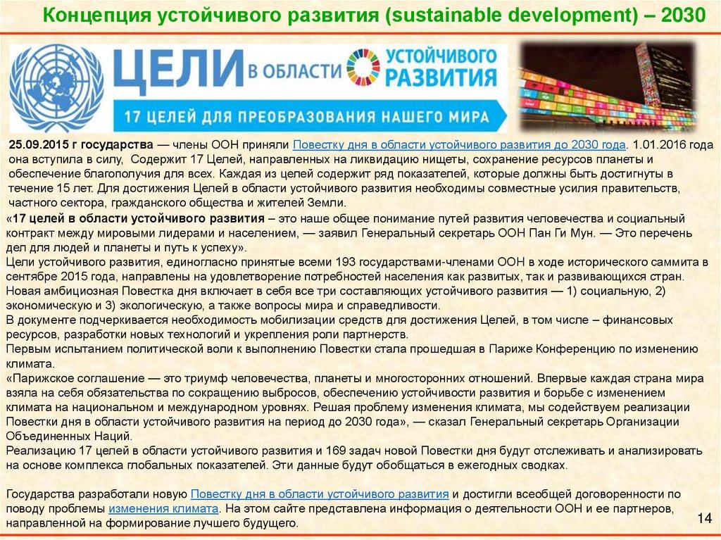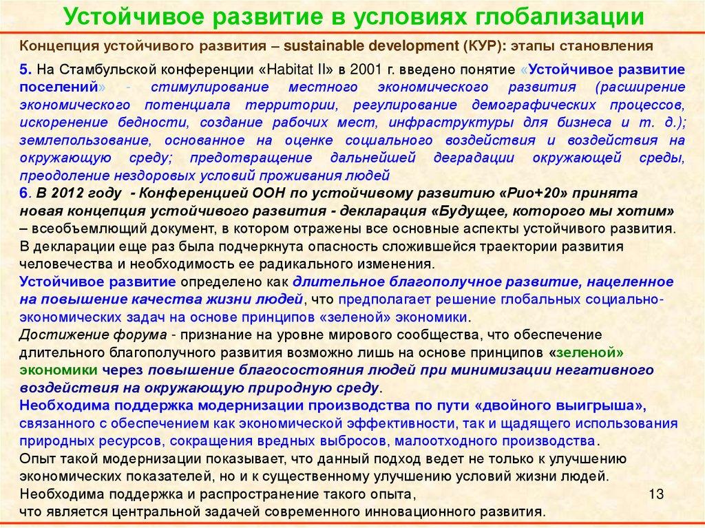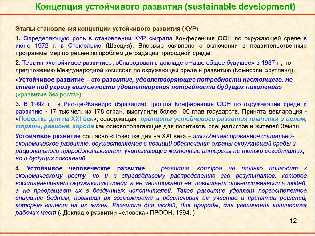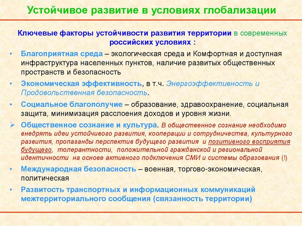 Задача развития. Необходимость обеспечения адекватных условий для устойчивого