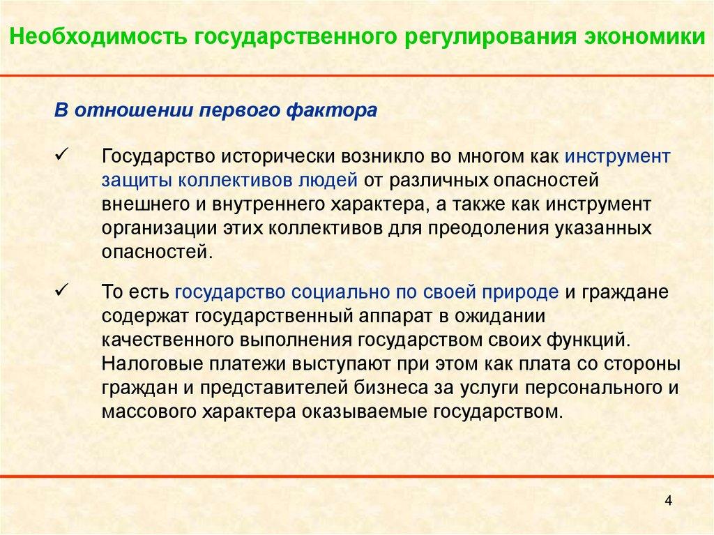 Необходимость государственного регулирования экономикиВ отношении первого фактора