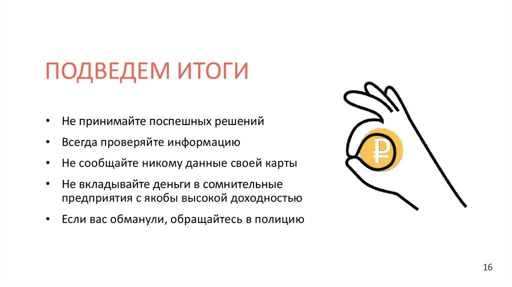ПОДВЕДЕМ ИТОГИ• Не принимайте поспешных решений