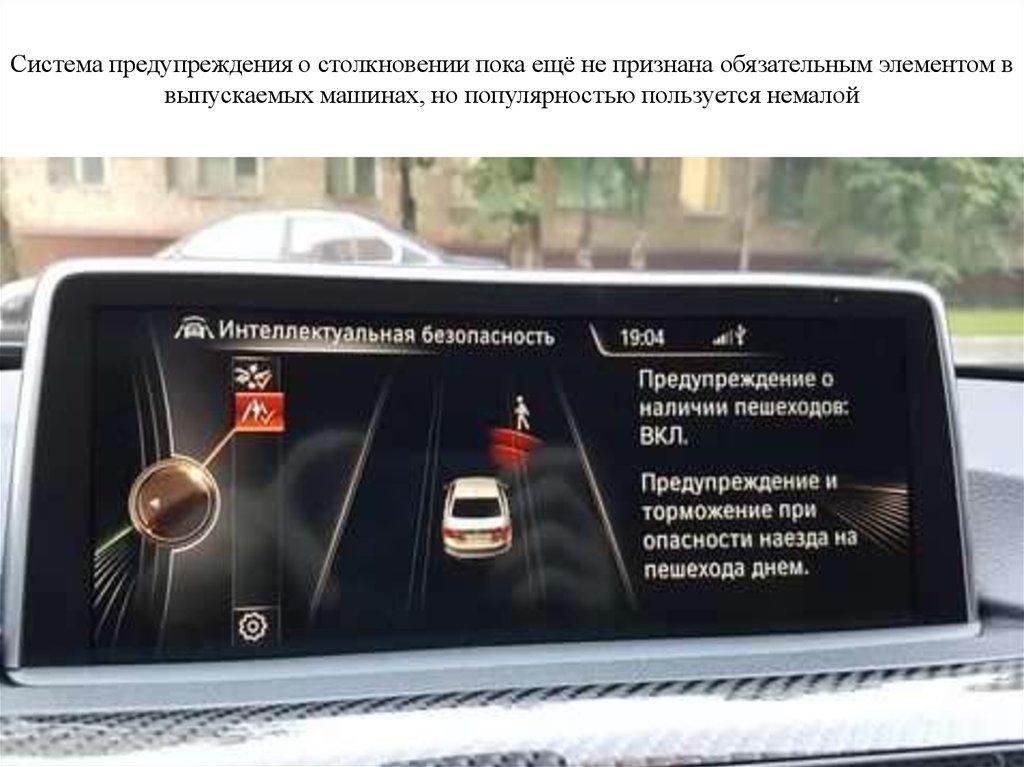 устанавливаются в новые автомобили.3. Система предупреждения о столкновении пока ещё не признана обязательным элементом в выпускаемых машинах, но популярностью